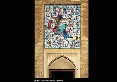 بر سر در ارگ صحنه نبرد کشته شدن دیو سفید به دست رستم بهصورت کاشیکاری هفترنگ نقش بسته این کاشیکاری متعلق به دوره قاجاریه است که به ارگ افزوده شده است.