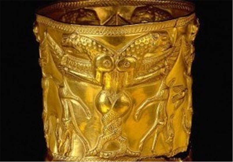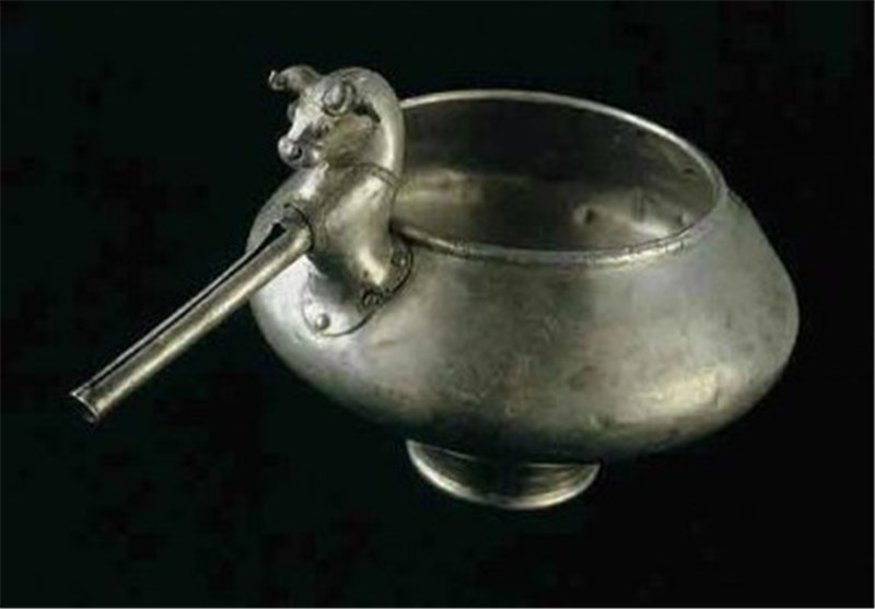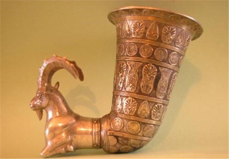 ازجمله اشیا منحصربهفرد این مجموعه، ریتون بزنشسته با بلندی 132 میلی مترو قطر دهانه 95 میلیمتر است و از دوتکه جدا از هم ساختهشده و بهصورت یک بزنشسته است که بهصورت قیفی به هم وصل شدهاند.