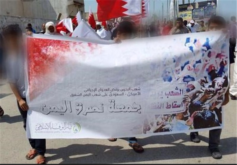خبرگزاری تسنیم: مردم بحرین در اعتراض به جنگ علیه یمن به خیابان‌های این کشور ریخته و امروز را "جمعه یاری رساندن به یمن" نامگذاری کردند.