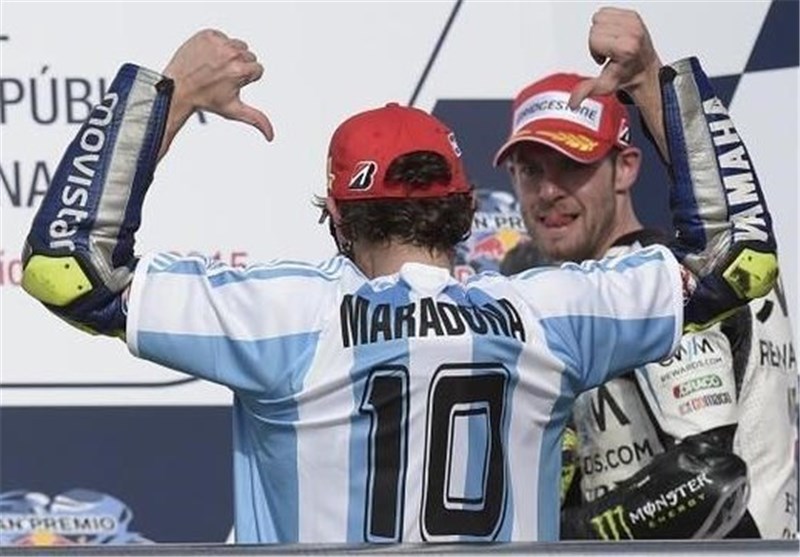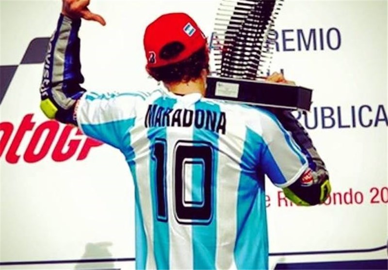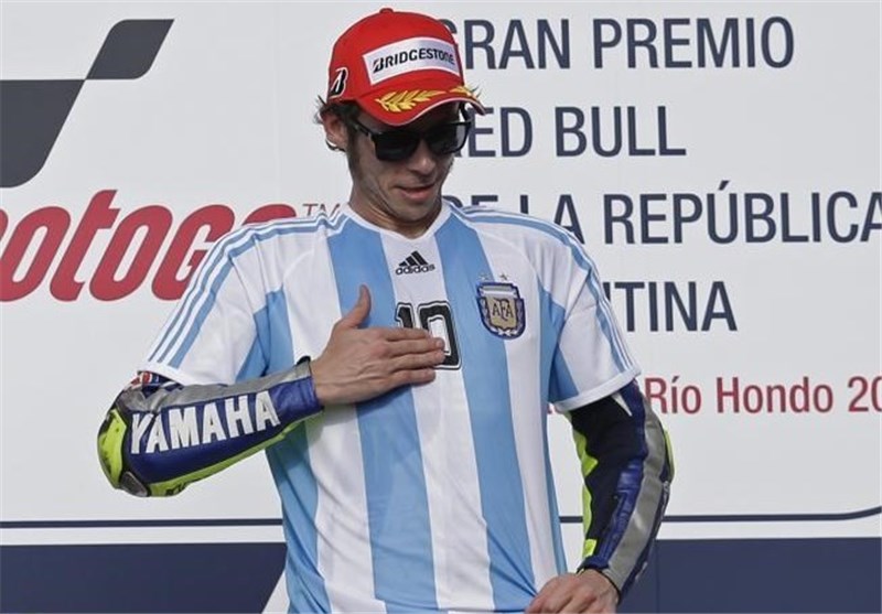 به گزارش خبرگزاری تسنیم، والنتینو روسی از تیم یاماها روز گذشته (یکشنبه) در گرندپری آرژانتین با ثبت زمان 41 دقیقه و 35 ثانیه به عنوان نخست رسید. این دومین پیروزی این موتورسوار ایتالیایی در مسابقات فصل جاری موتوجیپی قهرمانی جهان بود. قهرمان 9 دوره مسابقات جهانی پس از اتمام این مسابقه با پوشیدن پیراهن شماره 10 تیم ملی آرژانتین که پشت آن نام دیهگو مارادونا، اسطوره فوتبال آلبیسلسته حک شده بود، قهرمانیاش را جشن گرفت.