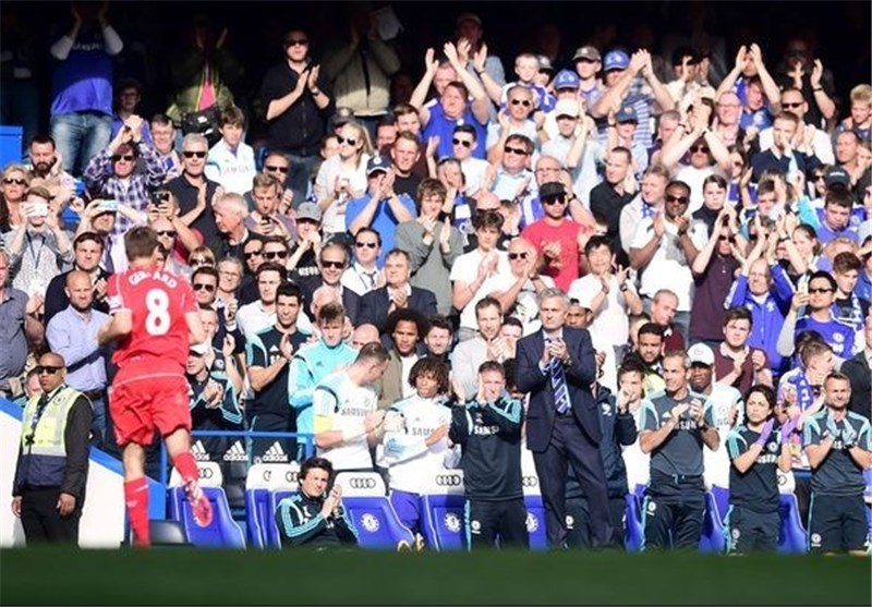 تشویق جرارد از سوی هواداران چلسی و سرمربی پرتغالی آنها ژوزه مورینیو در شرایطی بود که از رویارویی دراماتیک دو تیم در پایان فصل گذشته (همان دیداری که سر خوردن پای جرارد منجر به شکست خانگی لیورپول برابر چلسی و از بین رفتن شانس قهرمانی مرسیسایدیها شد) کاپیتان لیورپول در هر رویاروییاش با آبیهای لندن، با شعارهایی که گاف او را به یادش میآورد آزرده خاطر شد.