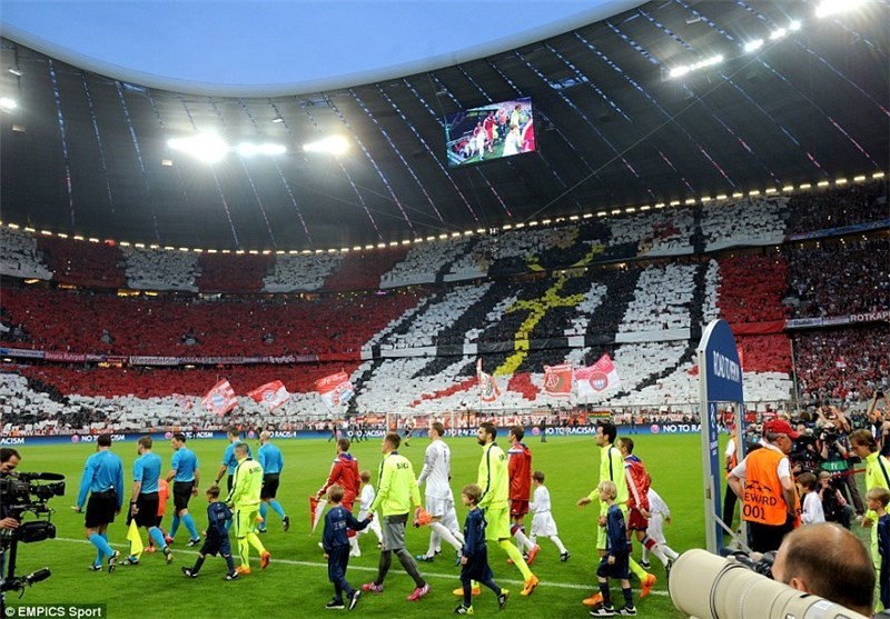 در تصاویر زیر بنر موزائیکی هواداران بایرنمونیخ در بازی برگشت برابر بارسلونا را در ورزشگاه آلیانتس آرهنا میبینید