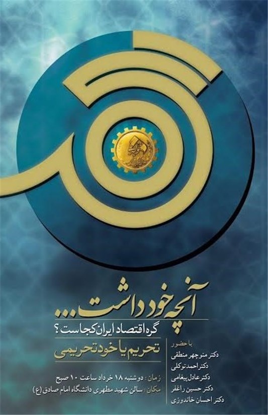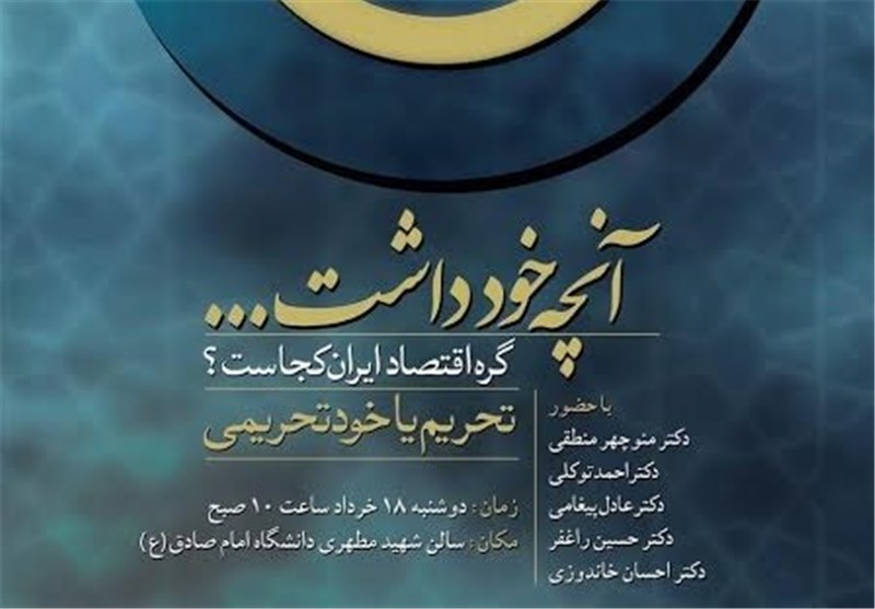 به گزارش خبرگزاری تسنیم، در این جلسه منوچهر منطقی رئیس سازمان صنایع هوایی، احمد توکلی نماینده مردم تهران و استاد و عضو هیئت علمی دانشگاه شهید بهشتی، عادل پیغامی استاد، عضو هیئت علمی و رئیس مرکز تحقیقات دانشگاه امام صادق(ع) ، حسین راغفر استاد و عضو هیئت علمی دانشگاه الزهرا(س) و احسان خاندوزی استاد و عضو هیئت علمی دانشگاه علامه طباطبایی در مورد «الگوی باز کردن گره تحریم» و «تحریم و خودتحریمی» به ایراد نقطه نظرات خود میپردازند.