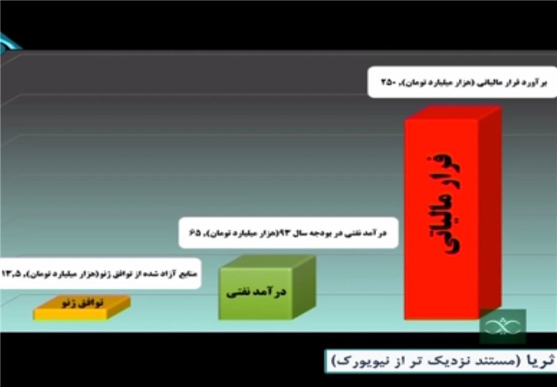 در اثبات این گزاره بسیار مهم رهبر معظم انقلاب، اخیراً در مستندی که با عنوان "نزدیکتر از نیویورک" و توسط برنامه ثریا از شبکه اول سیما پخش شد، نموداری به تصویر کشیده شد که در آن نشان میدهد اگر با فرارهای مالیاتی مبارزه جدی شده و جلوی این فرارها گرفته شود، درآمد حاصل بسیار بیشتر از درآمد سالانه از فروش نفت خواهد بود. همین نمودار بهروشنی گواه عملیبودن و اجرایی بودن اقتصاد مقاومتی است.