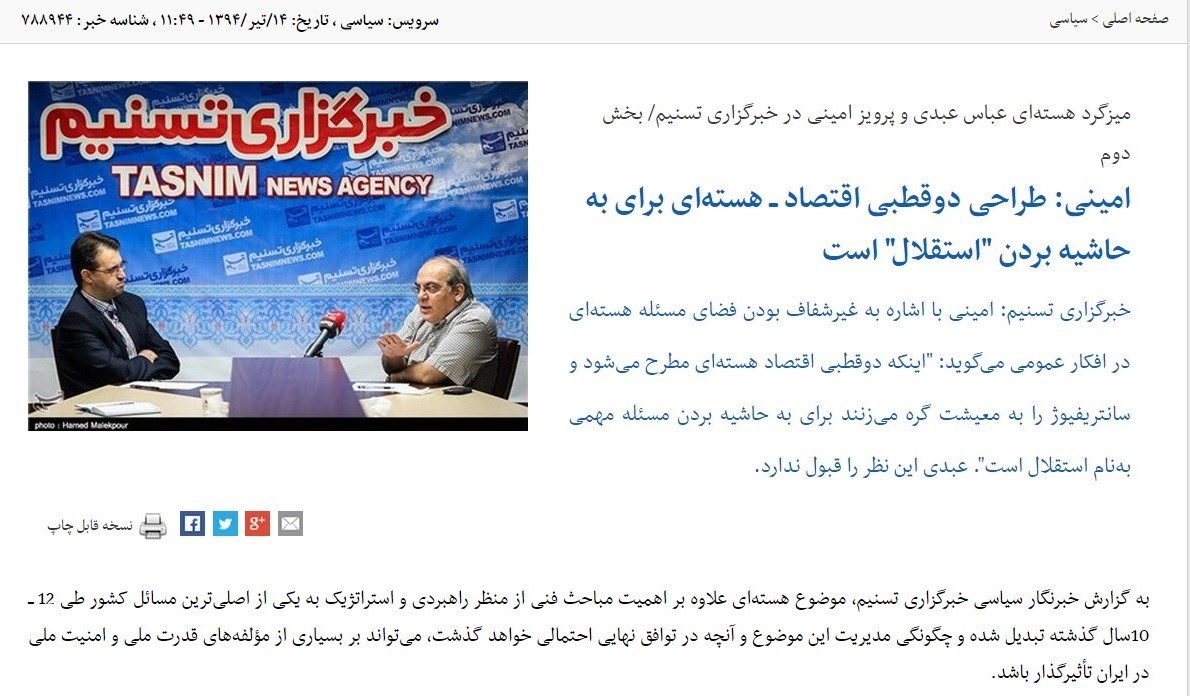 با این حال بهعقیده برخی کارشناسان، هنوز "صورت مسئله" هستهای و لبّ و اساس اختلاف دیدگاهها در این باره آنطور که باید و شاید "شفافسازی" نشده است. آنچه بیش از هرچیز دیگر در منازعات هستهای این روزها در کشور بروز و ظهور دارد، مباحث فنی و همچنین نسبت فناوری هستهای با مسئلهای است بهنام "اقتصاد". در حقیقت دو طرف اولاً از منظر تکنیکی و فنی و حقوقی متون و اظهارات مرتبط با هستهای را بررسی میکنند و از سوی دیگر نسبت آن را با اقتصاد و معیشت این روزهای مردم واکاوی میکنند. با این حال کمتر به این مسئله پرداخته شده است: آیا همه اختلافات در همین ظاهر ماجرا نهفته است یا باید با بررسی بیشتر به اختلاف نظر در مبحث ریشهای دیگری توجه کرد؟ در میزگردی که با حضور آقایان عباس عبدی و پرویز امینی از چهرههای برجسته تحلیلگر اصلاحطلب و اصولگرا در خبرگزاری تسنیم برگزار شد، به این مهم پرداخته شده است.