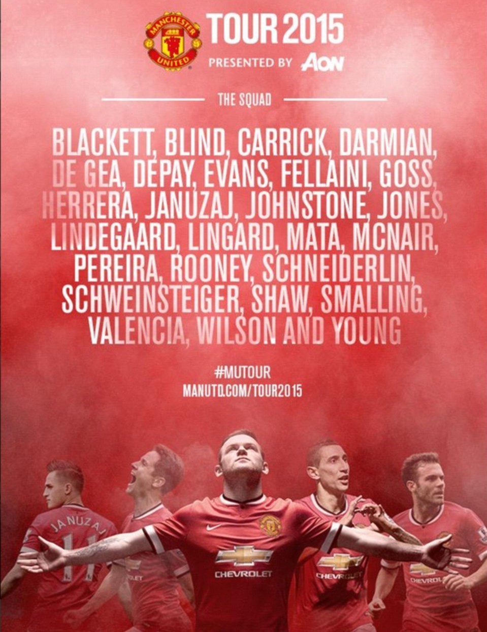 حضور داوید دخهآ، دروازهبان سرخپوشان که شایعه جداییاش از این تیم و انتقال او به رئالمادرید مطرح بود، جلب توجه میکرد. غیبت آنخل دیماریا در تور آمریکایی منچستریونایتد هم شایعه جدایی او از این تیم و ملحق شدن به پاریسنژرمن را قوت بخشید. همچنین گفته میشود در صورت تمایل باشگاه رئال مادرید، آنخل دیماریا گزینه بازگشت به این تیم هم است. ویکتور والدس اسپانیایی هم در این سفر همراه شیاطین سرخ نبود و هنوز علت غیبت او در این تور فاش نشده است.
