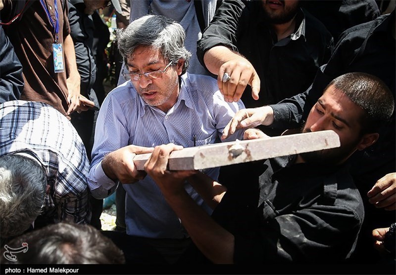 * گروه دمامزنی با فریادهای «یا حیدر» فضای مراسم تدفین را روحی تازه بخشید. هنرمندان هم کنار بچههای گروه تفحص شهدا دست به کار شده و در خاکسپاری شهدای گمنام مشارکت میکنند.