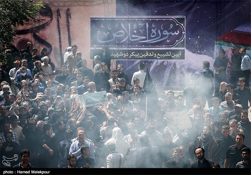* میانه مسیر تشییع نماز میت بر پیکر این دو غواص شهید 19 و 20 ساله که در عملیات کربلای4 در امالرصاص به شهادت رسیدهاند و در یک گور دستهجمعی در ابوفلوس کشف شدهاند، بعد از گذشت 29 سال از شهادتشان در خیابان استاد نجاتاللهی با حضور عموم مردم تشییع کننده اقامه شد.