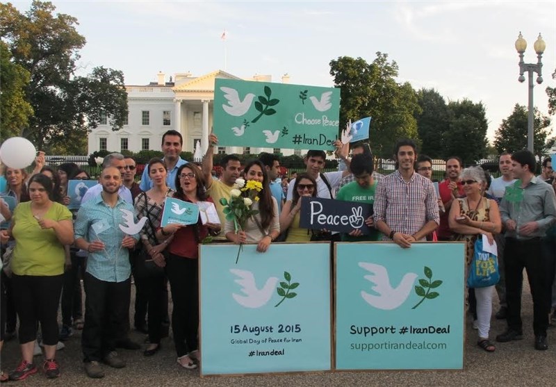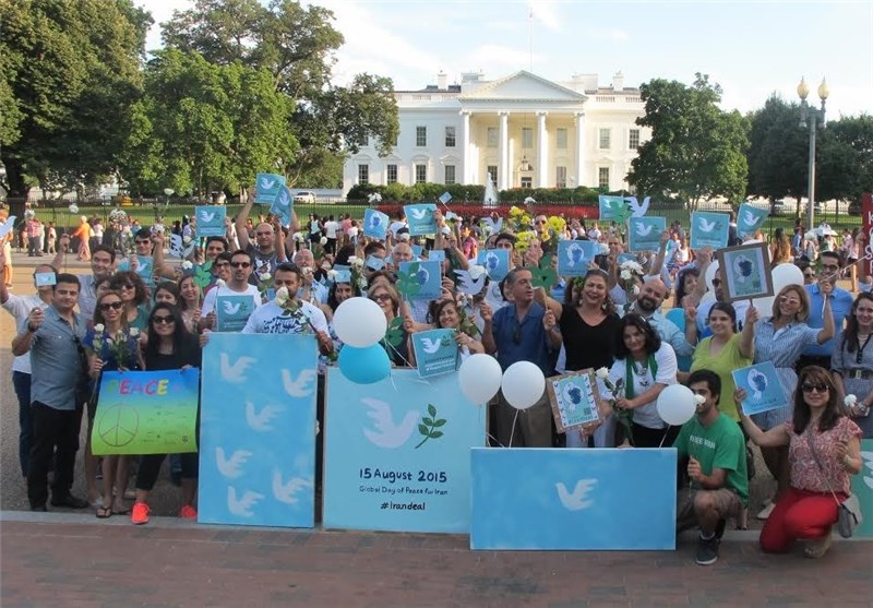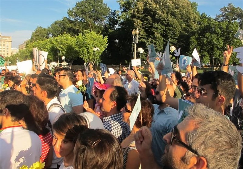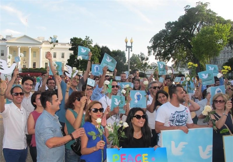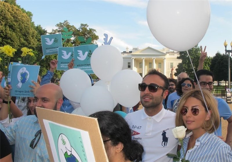 خبرگزاری تسنیم: صدها نفر از مردم، از جمله ایرانیان خارج از کشور به نشانه حمایت از توافق هسته‌ای در مقابل کاخ سفید تجمع کردند.