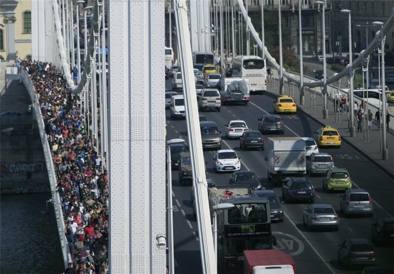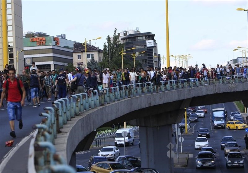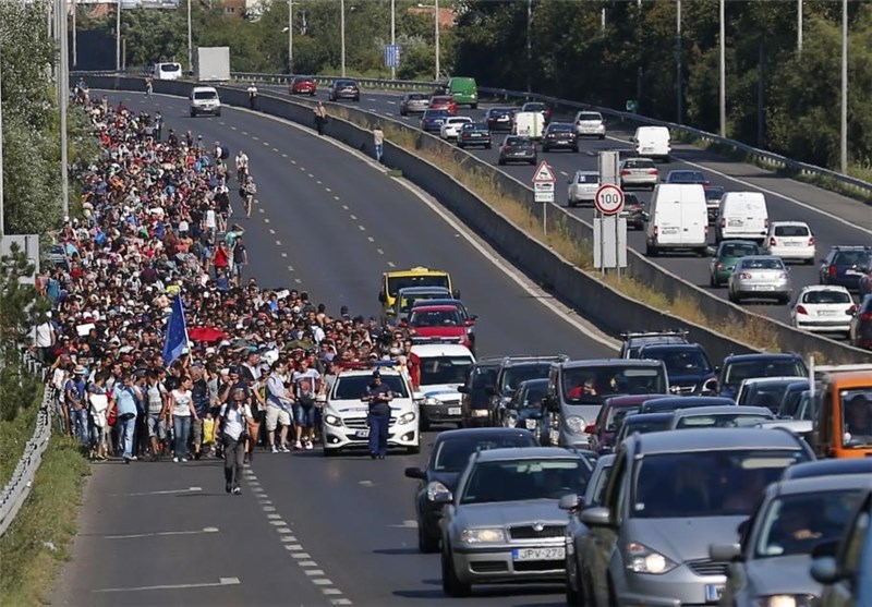 صدها مهاجر سوری پیاده از مجارستان عازم اتریش شدند+تصاویر