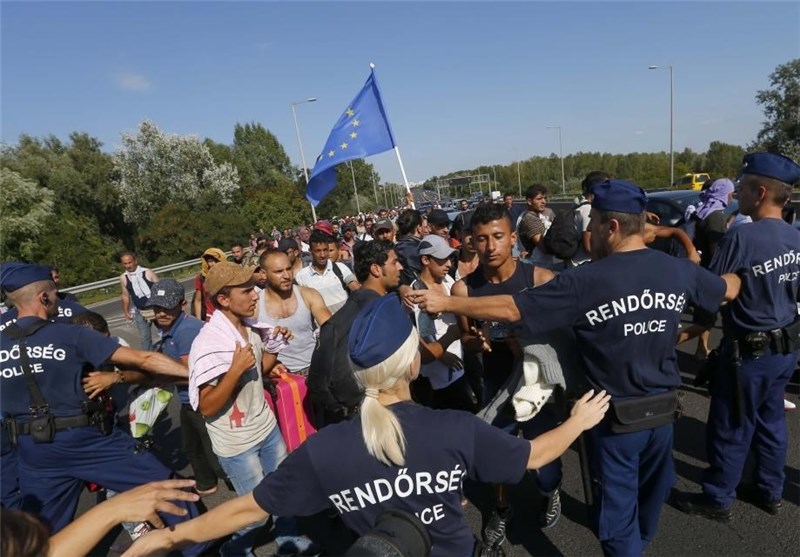 پناهجویان برای وارد نشدن به اردوگاه‌های مجارستان مقاومت می‌کنند