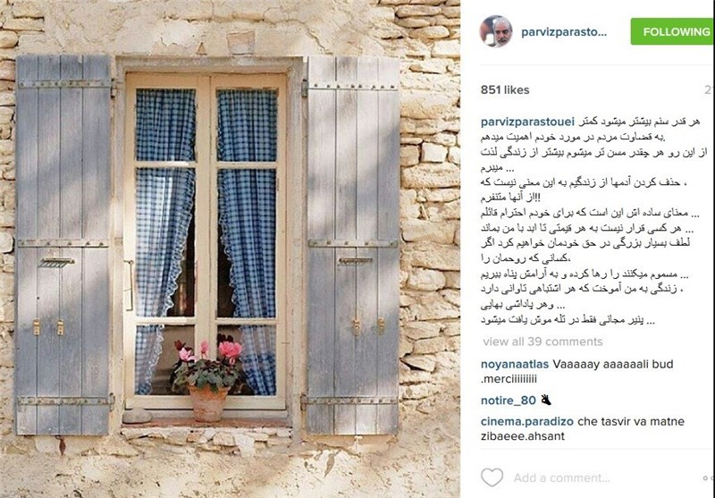 به گزارش گروه رسانه های خبرگزاری تسنیم ؛ پرویز پرستویی در صفحه اینستاگرام خود نوشت: هر قدر سنم بیشتر میشود کمتر به قضاوت مردم در مورد خودم اهمیت می دهم.