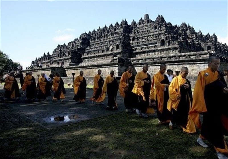 مراسم بوداییها در معبد یازده هزارساله بارابادور در جاوه