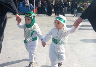 لباس سبز و چفیه و سربند علی اصغر (ع) و یا حسین (ع) مشخصه بارز تمام کودکانی است که امروز آمدهاند، مادران هم آمدهاند تا فرزندان خود را در مکتب سالار شهیدان تربیت کرده و نام حسین (ع) را نه تنها بر پیشانی وسربند کودکانشان بلکه بر دل آنها تا همیشه زمان ثبت کنند.