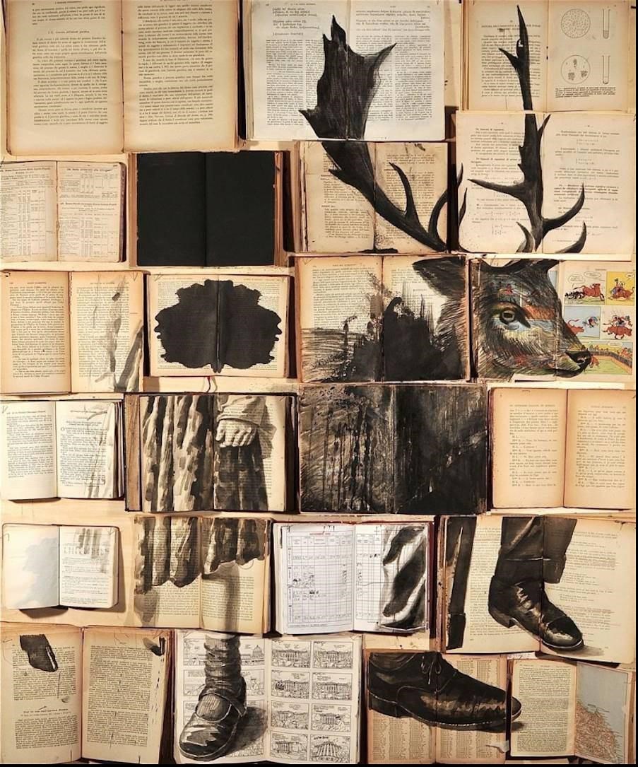 اول آنکه همیشه لازم نیست کتاب باشد، می‌تواند ماده خام پانیکانوا یک دفترچه حسابداری باشد. پس وقتی یک شی نامانوس در مجموعه شما خودنمایی می‌کند، می‌توان درهم ریختگی را نیز توجیه کرد. این نقاشی ترکیبی از یک گوزن ماده و پای یک مرد و پای یک دختربچه است. به نظر نقاشی روایتگر است.