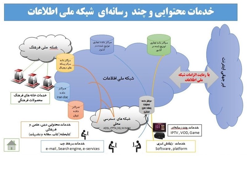 ساختار شبکه ملی اطلاعات در بخش محتوایی نشان میدهد که وزارت ارتباطات به صورت پیش فرض پذیرفته ارائه خدمات چند رسانهای اعم از IPTV و VOD با معاونت رسانههای مجازی سازمان صداوسیما است.
