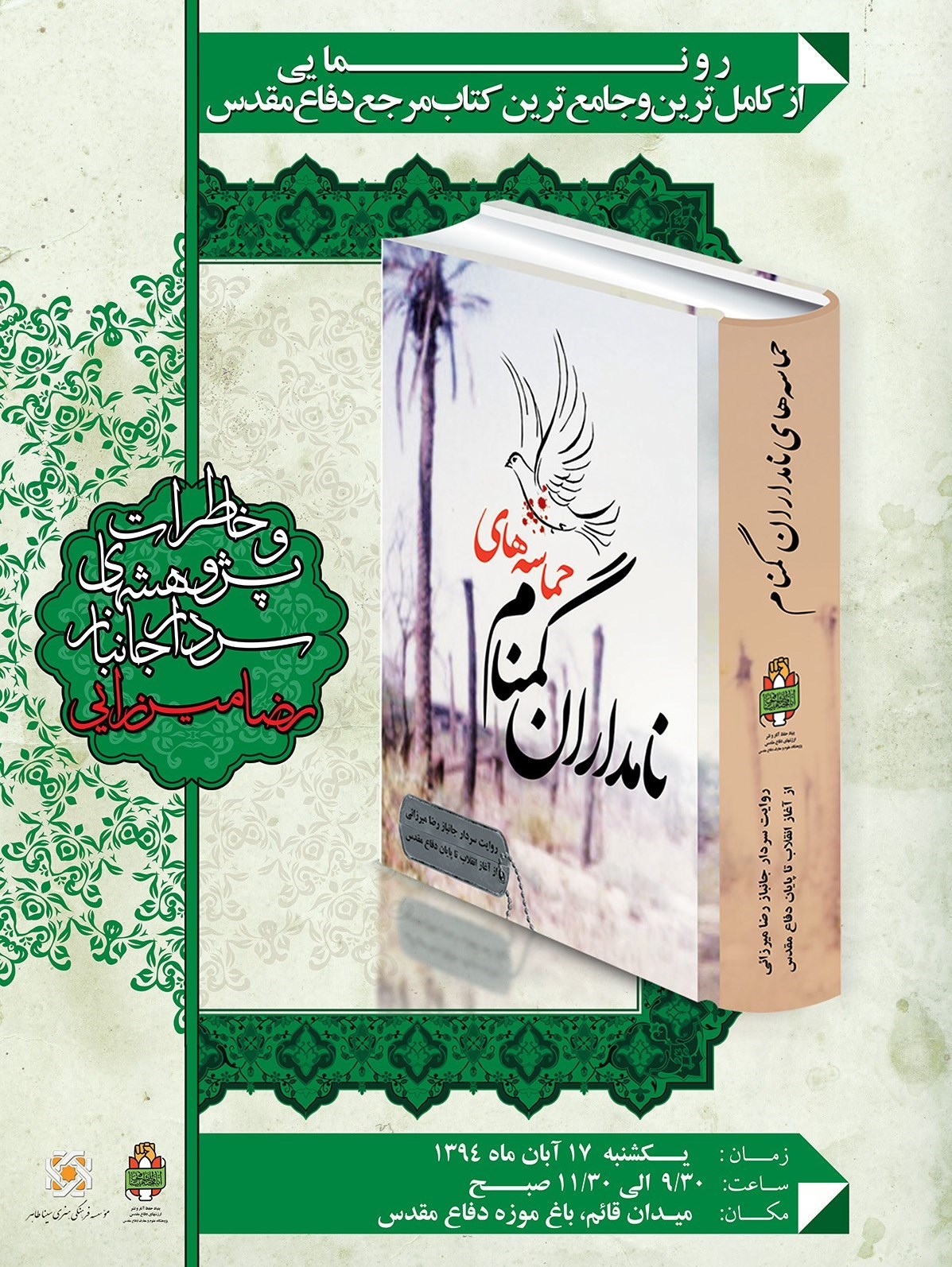 به گزارش تسنیم، مراسم رونمایی از کاملترین و جامع ترین کتاب دفاع مقدس کتاب حماسه های نامداران گمنام شامل؛ خاطرات و پژوهشهای سردار جانباز رضا میرزائی روز یکشنبه ١٧ آبان ٩٤ از ساعت ٩ الی١١ صبح در سالن اجتماعات باغ موزه دفاع مقدس همدان برگزار میشود.