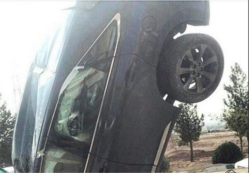 تصادف شدید لکسوس در پرند و واژگونی این خودرو به علت سرعت بالا را مشاهده می کنید .