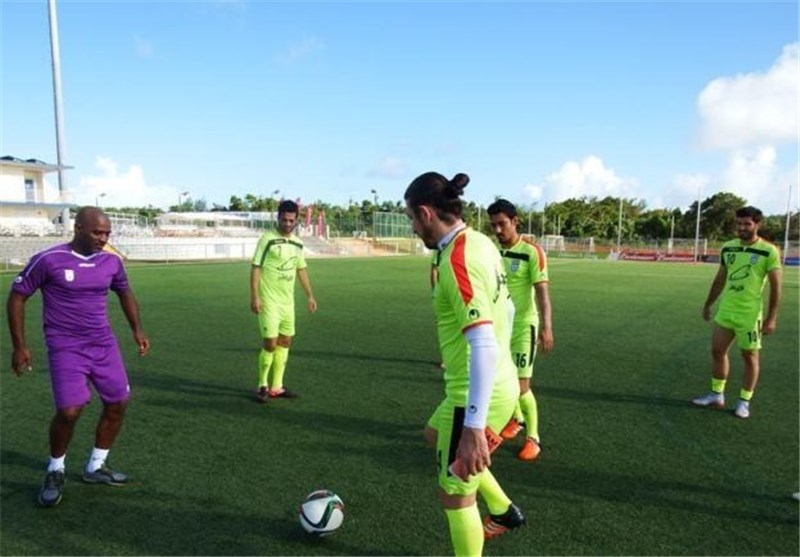* این تمرین مانند روز گذشته در زمین چمن مصنوعی ورزشگاه برگزار شد. آفتاب تند گوام هم باعث شده بود تا با نظر کادر فنی، بازیکنان با استفاده از واکس زیر چشمشان را سیاه کنند تا از انعکاس آفتاب در چشمشان تا حد زیادی گرفته شود. کارلوس کیروش نیز خود برای جلوگیری از انعکاس آفتاب از این راهکار بهره برد.