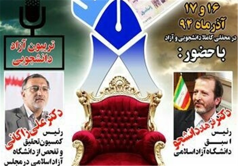 این برنامه با حضور علیرضا زاکانی رئیس کمیته تحقیق و تفحص از دانشگاه آزاد در مجلس و فرهاد دانشجو ریاست سابق دانشگاه آزاد به همت بسیج دانشجویی واحد علوم و تحقیقات 16 و 17 آذرماه برگزار میشود.