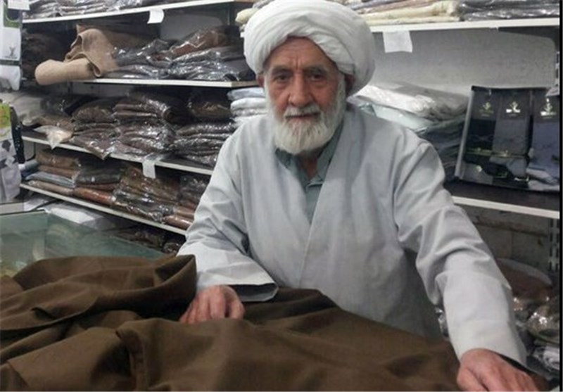 پیرمردی 76 ساله که با لباس طلبگی بر روی صندلی چوبی مغازهاش نشسته و با افتخار از 56 سال فعالیت خود در دوخت و دوز عبای طلاب سخن میگوید.