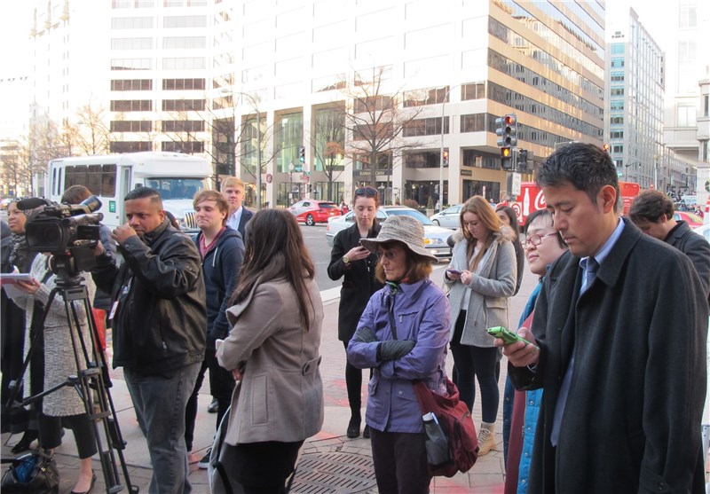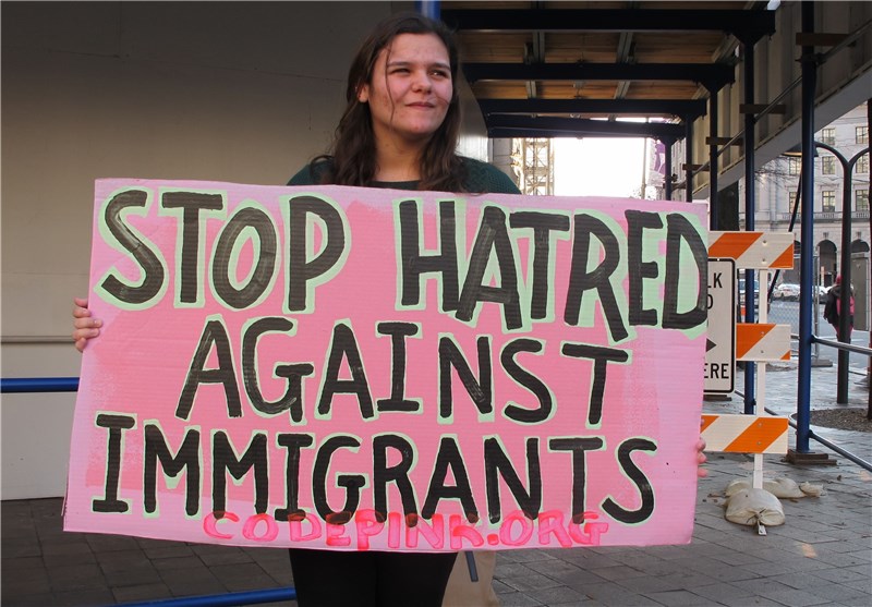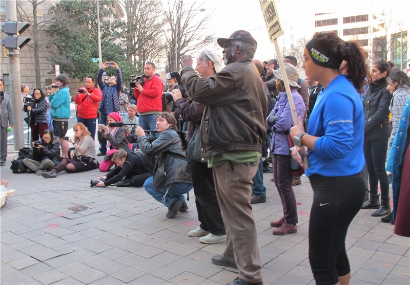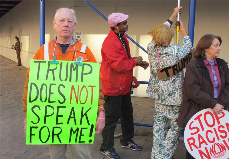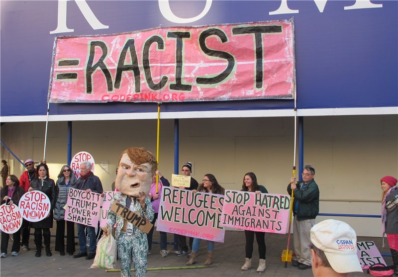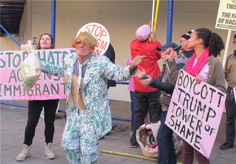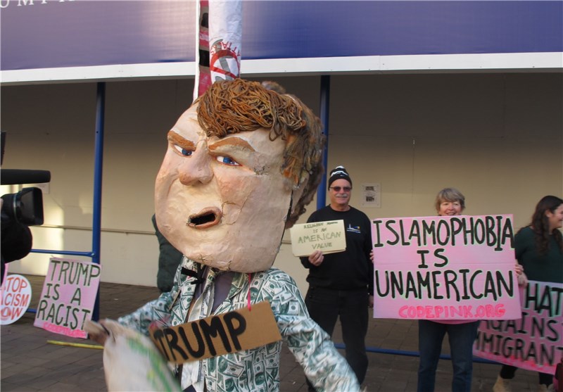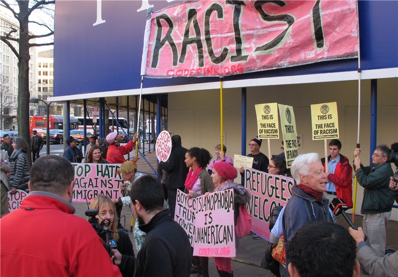 به گزارش خبرنگار بینالملل خبرگزاری تسنیم در واشنگتن، دهها تن از فعالان اجتماعی و حقوق بشر آمریکایی به دعوت گروههای ضد جنگ, عصر روز پنجشنبه با تجمع در مقابل یکی از هتلهای بینالمللی تحت مالکیت دونالد ترامپ در واشنگتن که در حال احداث است، اعتراض خود را نسبت به سخنان وی علیه مسلمانان فریاد زدند.