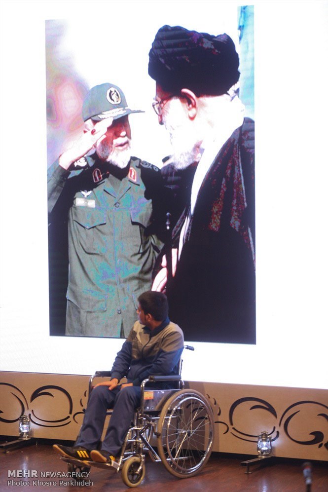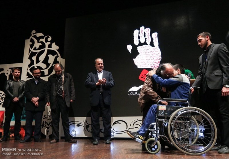 2. اختتامیه دومین سوگواره خمسه، امسال حال و هوای دیگری داشت، عطر شهدای مدافع حرم از ابتدای دومین سوگواره همراه شده بود تا به روز آخر، اقدامی که به حق سازمان فرهنگی هنری شهرداری تهران از محمود صلاحی مدیر عامل گرفته تا علی اصغر خسروی دبیر سوگواره و امیرحسین شفیعی، دبیر اجرایی سوگواره در آن دخیل بودند. شب گذشته برای حاضران در سالن به یاد ماندنی شد. دیشب وهب همدانی، فرزند شهید سردار حسین همدانی روی صحنه تئاتر فانوس 65 سالگی پدرش را همزمان با تولدش روشن کرد، پدر و برادر شهید میثم نجفی از شهرستان ورامین اشک ریزان روی صحنه آمدند و در آخر روح الله بختیاری، جانباز قطع نخاعی مدافع حرم روی ویلچر روی صحنه آمد و همه به احترام او بلند شدند، روح الله انگار شهیدی زنده بود در میان حاضران، صلاحی بر دستان روح الله بوسه زد و امیرحسین مدرس پای او را بوسید. داریوش ارجمند هم همشهری خود را در بغل گرفت، همشهری که گرچه اصالتی افغانستانی دارد، اما متولد شهر مشهد است.