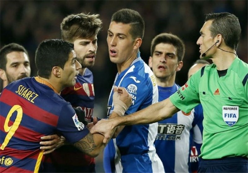 به گزارش آس، داور بازی در گزارش خود از دربی کاتالونیا که نوشته است که مهاجم اروگوئهای بارسلونا در پایان بازی در ورودی تونل منتهی به رختکنهای ورزشکاه نیوکمپ منتظر بازیکنان اسپانیول مانده و با گفتن چند کلمه آنها زمینهساز آغاز یک درگیری دیگر میان طرفین شده است.