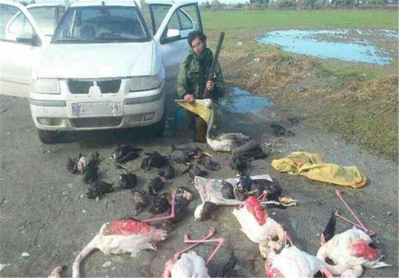 در تصویری که از این فرد متخلف منتشر شده است تصویر فرد متخلف با تفنگی در دست و جلوی خودرویش همراه با لاشه چندین فلامینگو دیده میشود. پلاک خودرو و چهره فرد متخلف به وضوح مشخص است که این موضوع باعث شده بود کاربران شبکههای اجتماعی مسئولان یگان حفاظت محیط زیست را خطاب قرار دهند و از آنان مجازات فرد خاطی را خواستار شوند.
