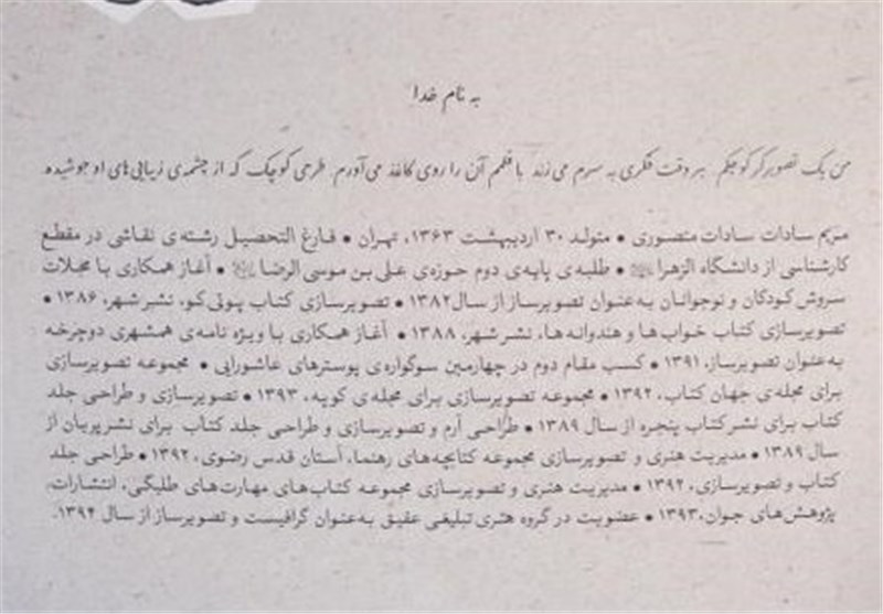 «من یک تصویرگر کوچکم. هر وقت فکری به سرم میزند با قلمم آن را روی کاغذ میآورم. طرحی کوچک که از چشمه زیباییهای او جوشیده». وارد نگارستان که میشوم این چند جمله که روی تابلوی معرفی نامه هنرمند نوشته شده، نظرم را به خود جلب میکند.