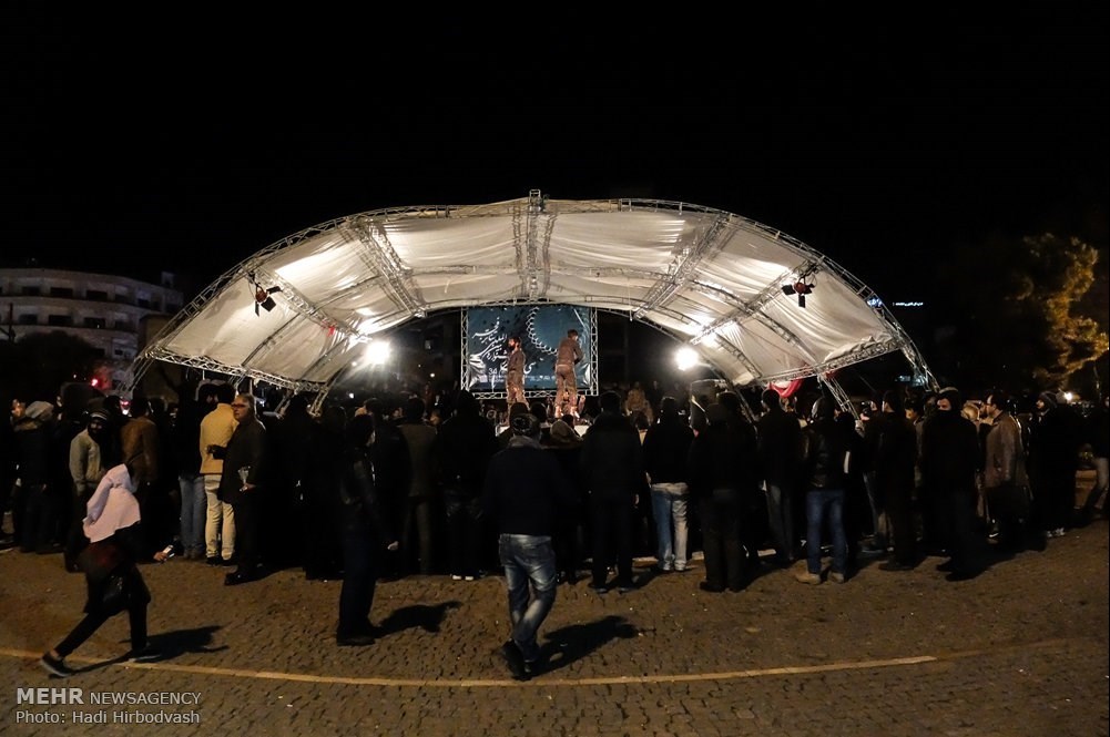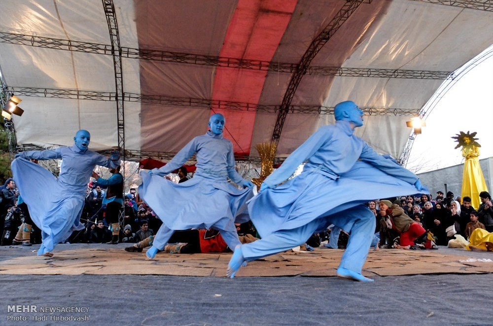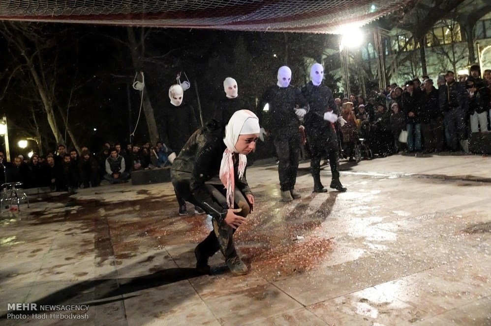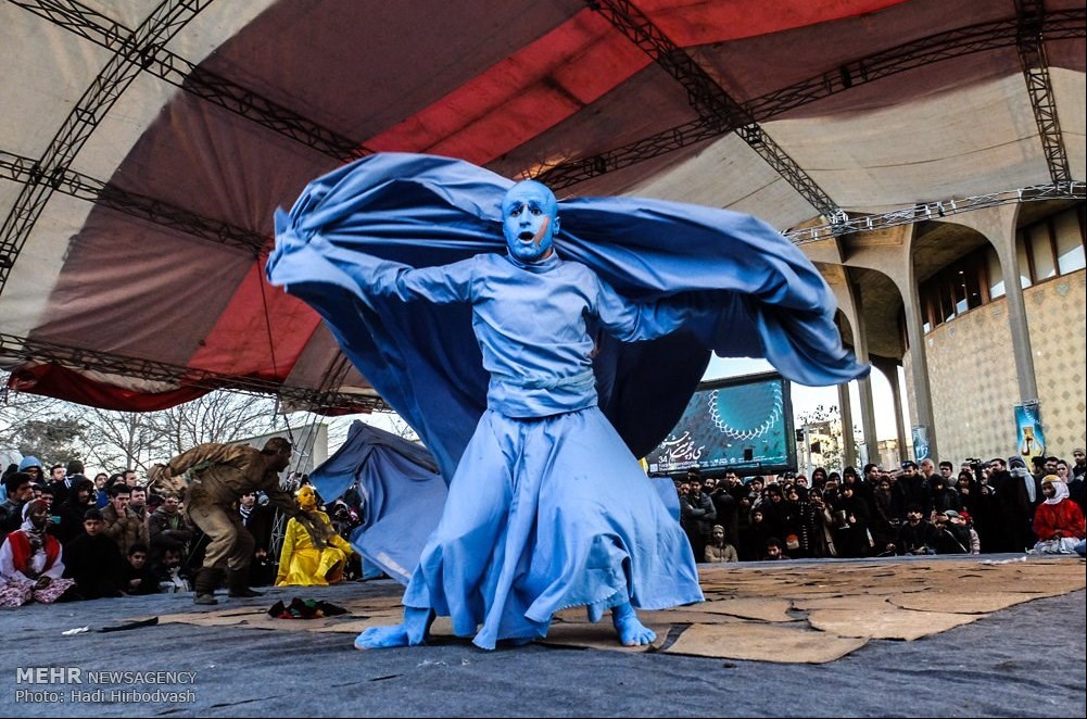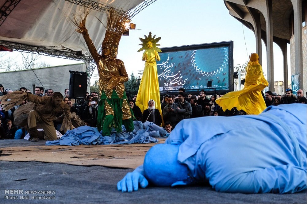 اجرای خیابانی سی‌وچهارمین جشنواره بین‌المللی تئاتر فجر عصر پنجشنبه با حضور گسترده علاقه مندان تئاتر در محوطه مجموعه تئاتر شهر برگزار شد.