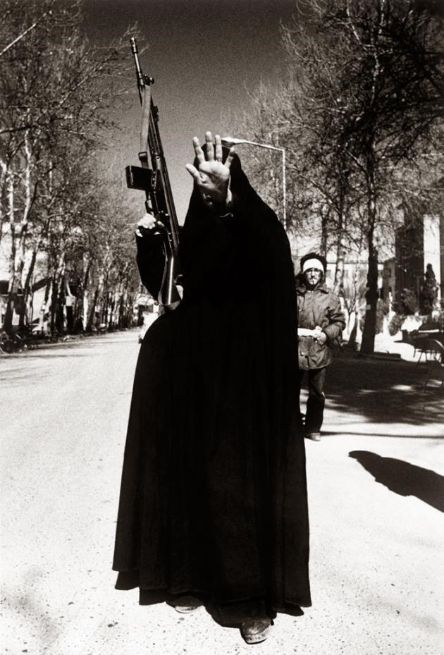 به گزارش گروه رسانه‌های خبرگزاری تسنیم،زن محجبه مسلح در محوطه داخل دانشگاه تهران به عکاس "کاوه کاظمی" ایست می دهد؛ این زن یکی از انقلابیون مسلحی است که پس از اشغال دانشگاه تهران به دست نیروهای انقلابی مامور برقراری امنیت شده است. این عکس در تاریخ 23 بهمن 1357 یعنی یک روز پس از پیروزی انقلاب اسلامی برداشته شده است.