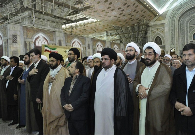 در این گردهمایی باشکوه حضرت آیت الله جوادی یکی از شخصیتهای علمی افغانستانی مقیم حوزه علمیه شهرری به نمایندگی از طرف ملت مجاهد و شهیدپرور افغانستان و مهاجرین افغانستانی مقیم ایران به بارگاه ملکوتی امام راحل تقدیم شد.