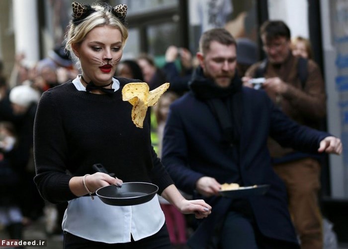 در مسابقات "دویدن با نان پنکیک" که به مناسبت روز "اعتراف" در لندن برگزار می شود شرکت کنندگان در حالیکه ماهیتابه ای در دست مایع "پنکیک" را درون آن می ریزند و با بسته شدن مایع کیک شروع به دویدن می کنند.