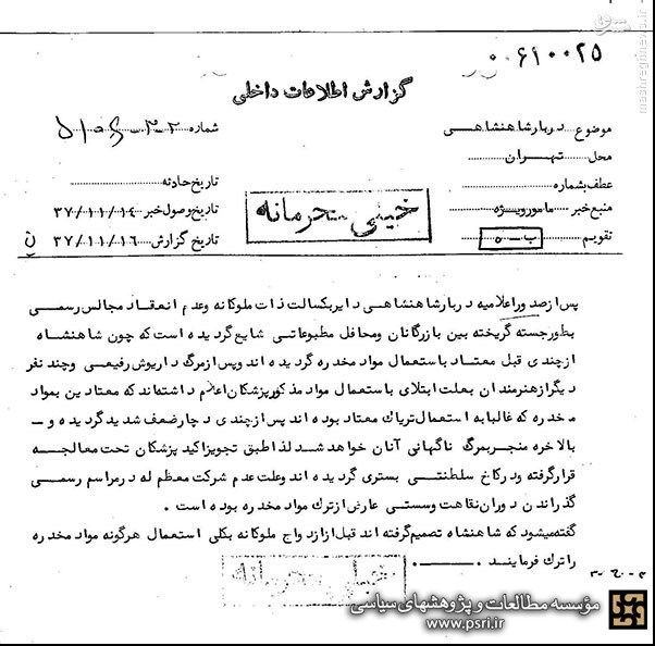گزارش ساواک از اعتیاد شاه را می‌بینید.