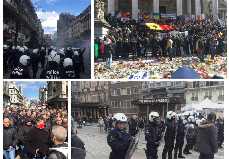 به گزارش گروه بین الملل خبرگزاری تسنیم به نقل از بی بی سی، در حالی که مردم بروکسل برای ادای احترام و گرامیداشت قربانیان حملات تروریستی سه شنبه گذشته در این کشور در یکی از میدان های مرکزی شهر تجمع کرده بودند، گروهی از فاشیست ها به این تجمع یورش بردند.