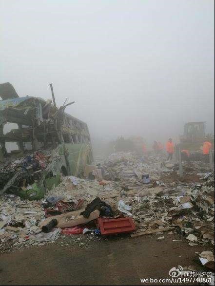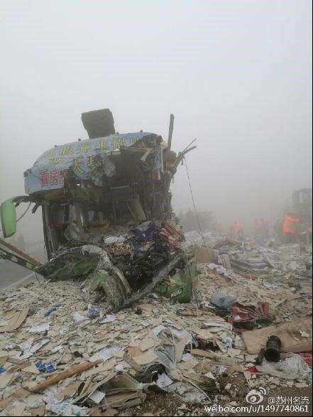 تصاویری که در رسانه‌های چینی منتشر شده‌اند لاشه یک اتوبوس را نشان می‌دهد که با دو دستگاه کامیون که در اتوبان اصلی شهر «شنیانگ» چین حرکت می‌کردند، برخورد کرده‌اند.