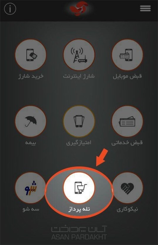 گام اول: پس از ورود به صفحه اصلی اپلیکیشن، گزینه تله پرداز را انتخاب کنید.
