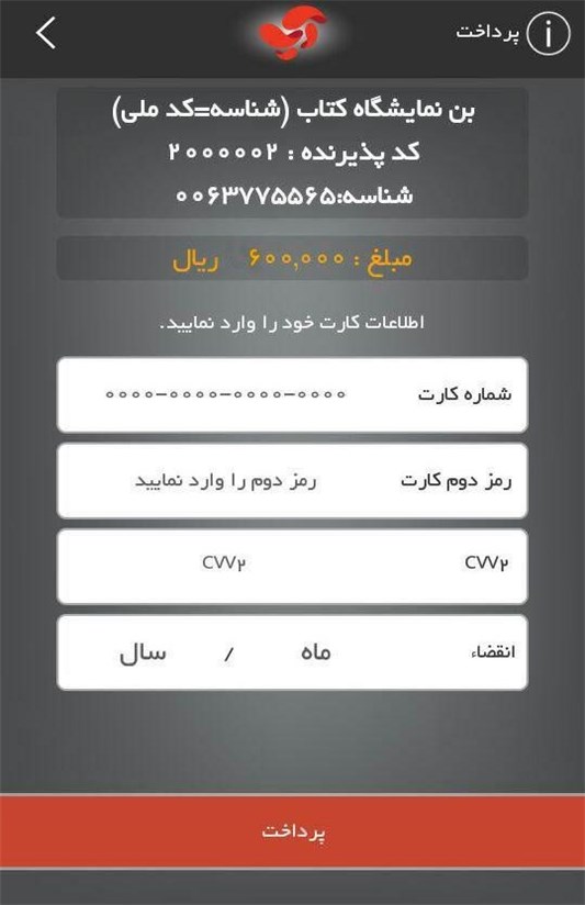 گام چهارم (پرداخت): در این مرحله مشخصات کارت بانکی خود را وارد نمایید. شما میتوانید از طریق کلیه کارتهای بانکی متصل به شبکه شتاب وجه بن کتاب را پرداخت نمایید. همچنین در نظر داشته باشید برای پرداخت از طریق اپلیکیشن باید رمز دوم کارت عابر بانک خود را دریافت کرده باشید. در صورتی که هنوز رمز دوم خود را دریافت نکردهاید، میتوانید با مراجعه به یکی از دستگاههای خودپرداز بانک صادر کننده کارت، به آسانی رمز دوم خود را دریافت کنید.