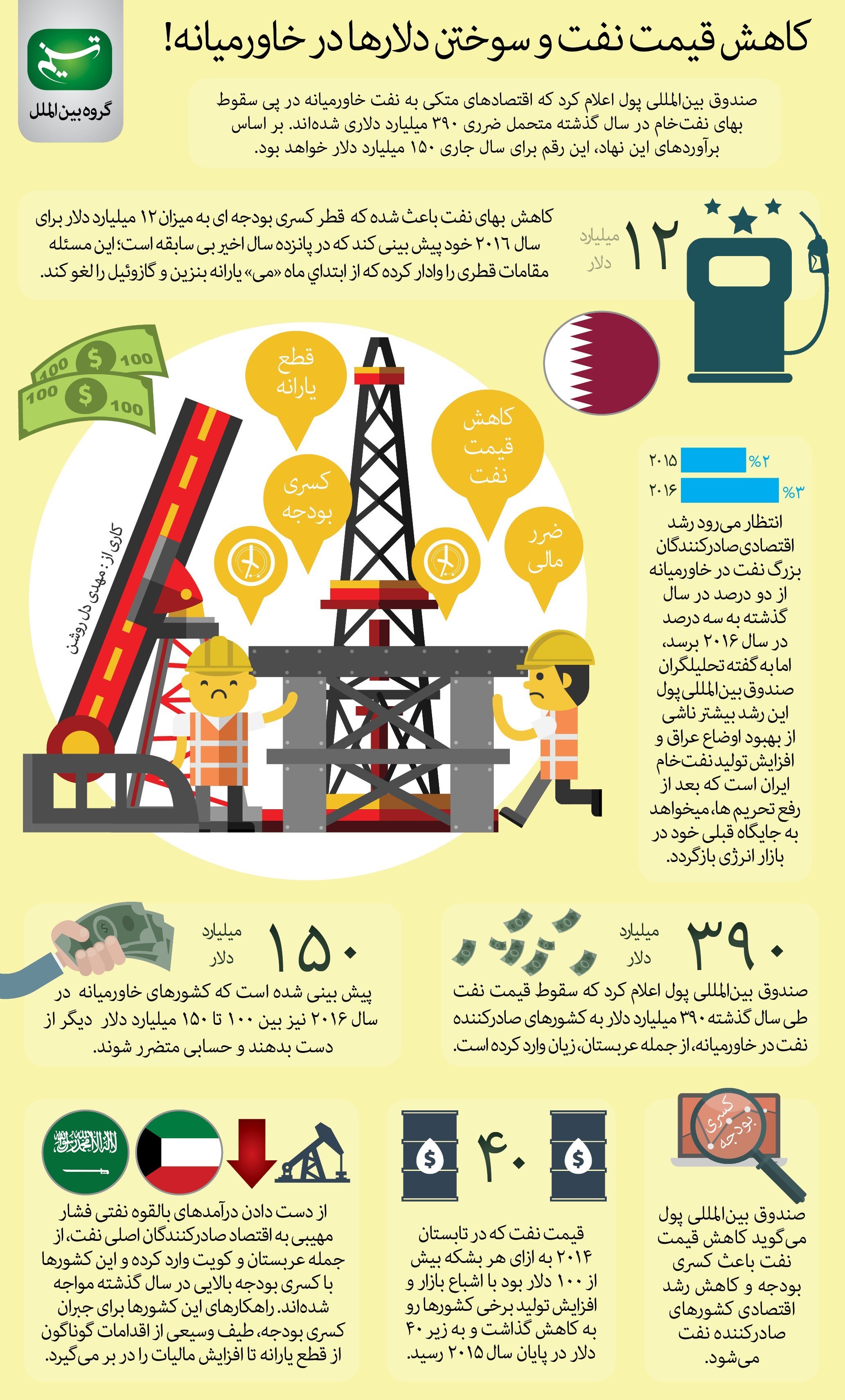 به گزارش گروه بین الملل خبرگزاری تسنیم، کاهش بهای نفت باعث شده که قطر کسری بودجهای به میزان 12 میلیارد دلار برای سال 2016 خود پیش بینی کند که در پانزده سال اخیر بی سابقه است؛ این مسئله مقامات قطری را وادار کرده که از ابتدای ماه «می» یارانه بنزین و گازوئیل را لغو کند.