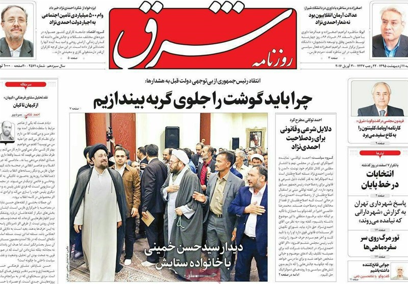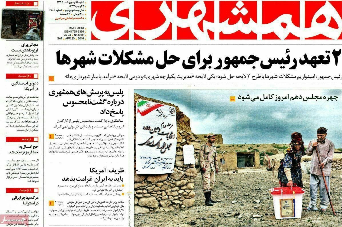 تصاویر صفحه نخست روزنامه‌های‌ 9 اردیبهشت