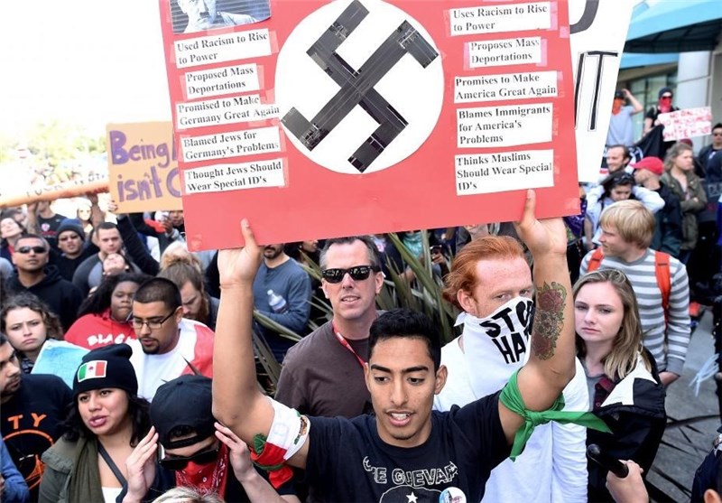 به گزارش گروه بینالملل خبرگزاری تسنیم، میلیونر نیویورکی مجبور شد کاروان خودروهایش را متوقف کرده و از درب پشتی به هتلی که قرار بود در آنجا برای جمهوریخواهان سخنرانی کند، وارد شود تا با صدها معترضی که در بیرون جمع شده بودند برخورد نداشته باشد.