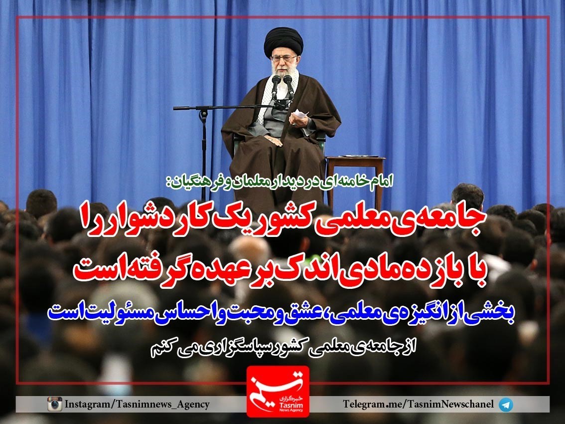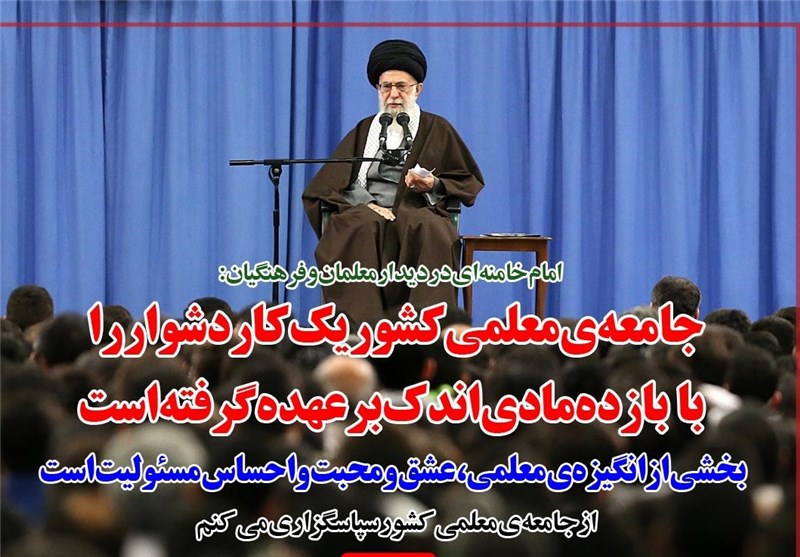 فوتوتیتر/امام خامنه ای: جامعه‌ی معلمی کشور یک کار دشوار را با بازده مادی اندک برعهده گرفته است