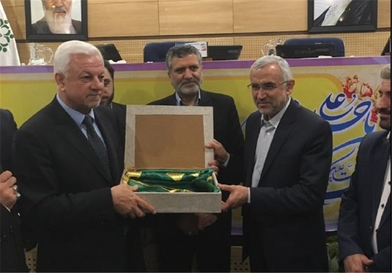 پرچم حرم امام علی(ع) توسط سفیر عراق در ایران به رئیس شورای شهر و شهردار مشهد تقدیم شد.