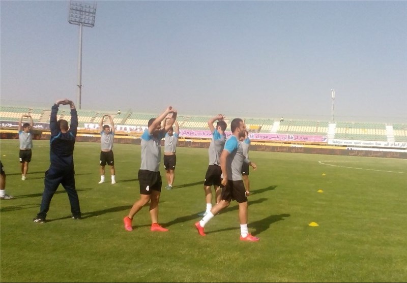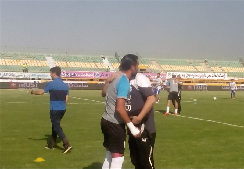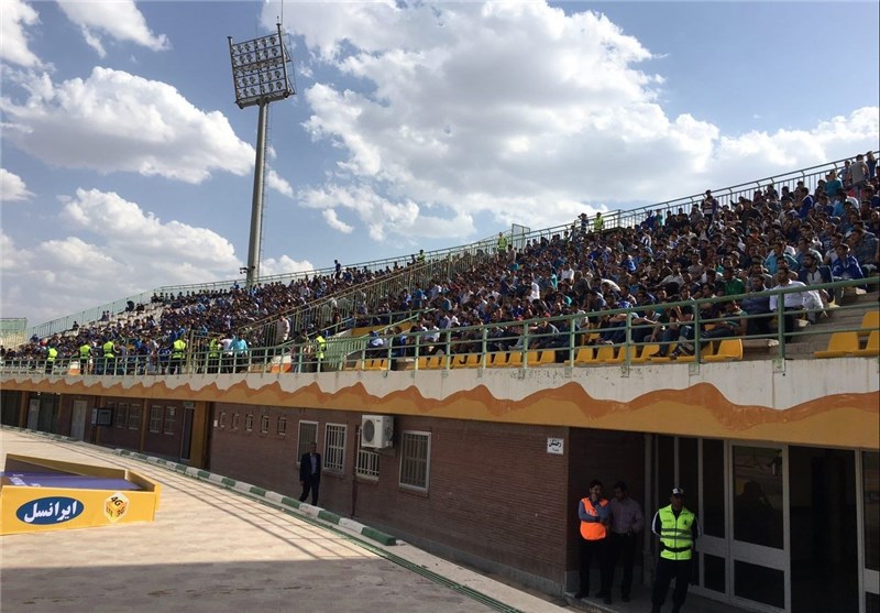 * مسولان ورزشگاه یادگار در لحظه ورود بازیکنان به داخل زمین، از حضور خبرنگاران در کنار زمین جلوگیری کردند.