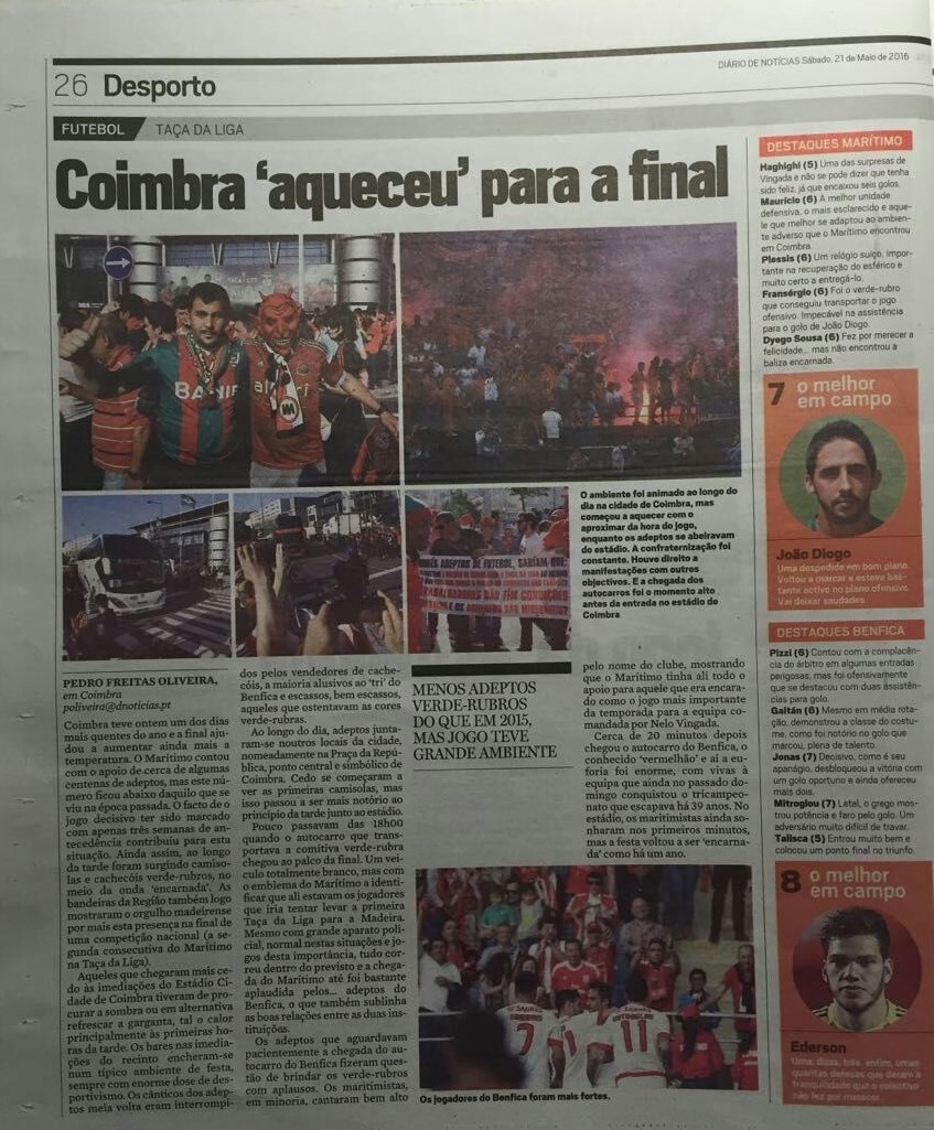 روزنامه دسپورتو هم بازی ماریتیمو و بنفیکا را تحلیل کرده و به بازیکنان دو تیم نمره داده است. در این بین روزنامه دسپورتو به عملکرد 6 بازیکن برتر هر دو تیم به صورت جداگانه نمراتی داده و توضیحاتی در خصوص آنها داده است. این روزنامه از 8 به علیرضا حقیقی نمره 5 داده است که نمره متوسط رو به بالاست و در توضیح عملکرد این بازیکن که او را یکی از 6 بازیکن برتر ماریتیمو مقابل بنفیکا دانسته نوشته است: «او یکی از سورپرایزهای وینگاداست. شما نمیتوانید بگویید که این دروزاهبان از خوردن 6 گل در این بازی خوشحال بوده است».