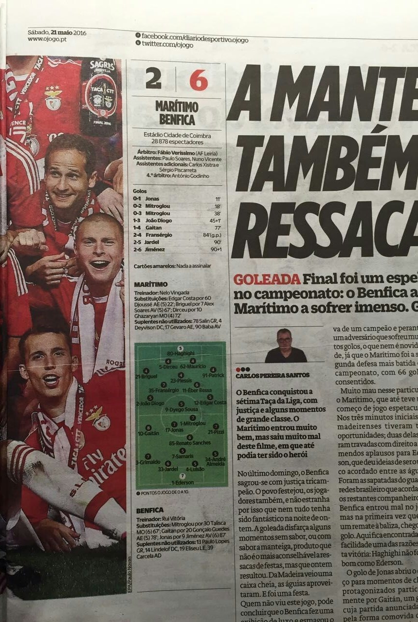 به گزارش خبرگزاری تسنیم، تیم فوتبال ماریتیمو در دیدار فینال جام حذفی لیگ برتر پرتغال جمعه به مصاف بنفیکا، قهرمان لیگ برتر این کشور رفت که در این دیدار با نتیجه 6 بر 2 شکست خورد.