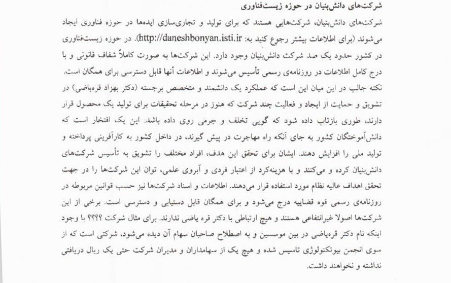 ** بند نهم: شرکتهای دانشبنیان در حوزه زیست فناوری
