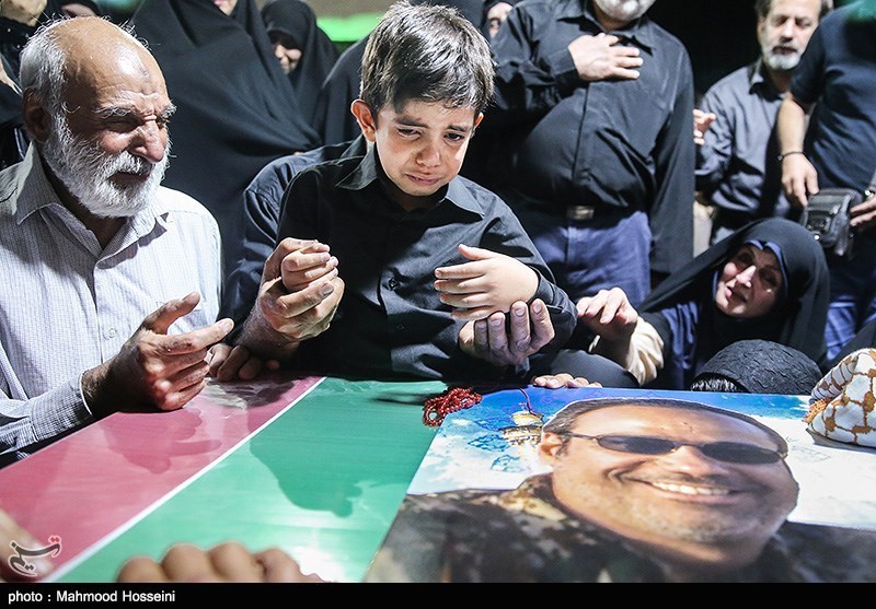 پدر با صدای بلند گریه میکند و از پسر و خوبیهایش یاد میکند. اما مادر و همسر او آرام در کنار تابوت شهید شیر دل اشک میریزند. امیر علی با لباس مشکی کنار پدر اشک میریزد و دل اطرافیان را میلرزاند که یکی از اعضای خانواده امیر علی شش ساله را در بغل میگیرد و او را از جمع بیرون میبرد. شاید نگران آن است که این کودک بیش از این تاب وداع جانسوز با پیکر پدر را نداشته باشد. مادر در مورد باور کودک خردسالش نسبت به شهادت پدر میگوید: « برای یک بچه شش ساله باور این موضوع خیلی سخت است. او نمیتواند باور کندو اما من همانطور که در این یک سال به او گفتهام از این بعد هم میگویم که پدرش یک قهرمان بوده و باید به او افتخار کند. ما به این موضوع باور داریم که هر قطهر اشک این بچهةای مظلوم تیشهای به ریشه داعش است.»