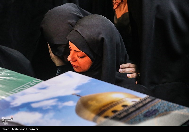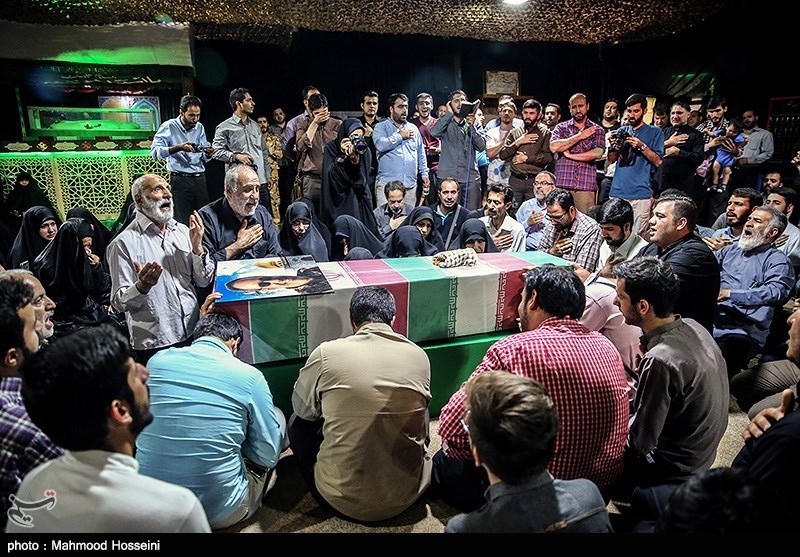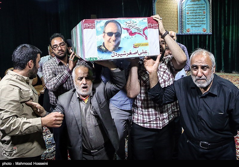 مداح دیگری که مجلس را دست گرفته است یک جمله میگوید که آتش به جان همه میزند. او میگوید از رفقا و خانواده شهید علی اصغر شیردل که بعد از یک سال شهیدشان را پیدا کردهاند میخواهم که امروز کنار این تابوت یک دعا بکنند: «دعا کنید رفقای دیگر هم برگردند. شهدای مفقودالاثر زیادی در سوریه داریم که همه چشم انتظار خبری از آنها هستند. دعا کنید نشانی هم از آنها پیدا شود.»